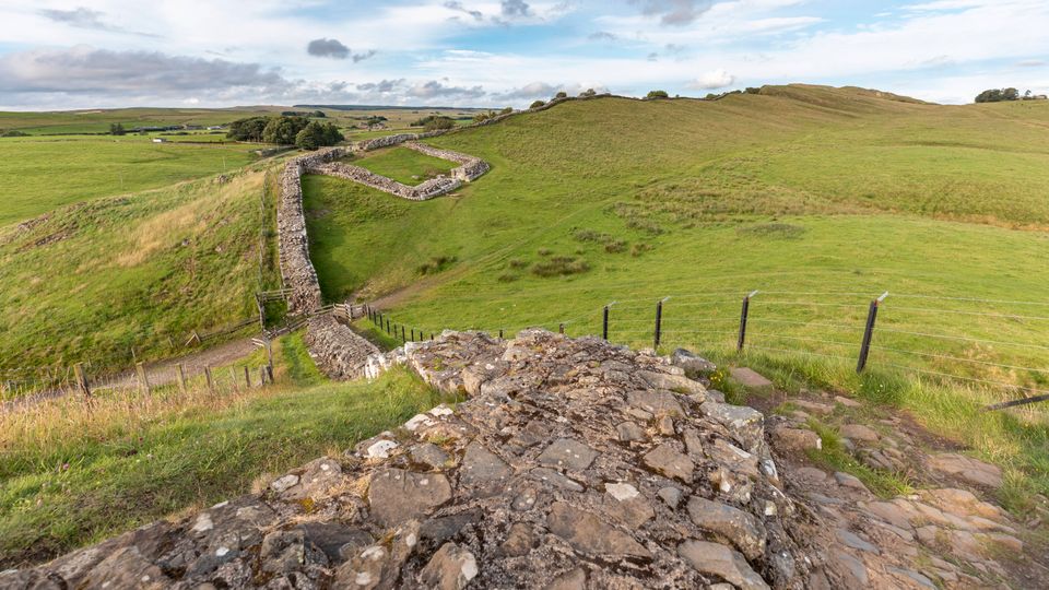Überreste des Hadrianswalls nahe dem nordenglischen Hexham