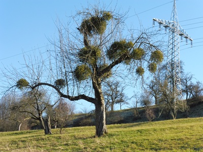 Der Befall von Misteln an Obstgehölzen hat in den letzten Jahren stark zugenommen. Misteln leben als Halbschmarotzer parasitisch auf Gehölzen und entziehen den Bäumen Wasser und Nährstoffe. Bei einem starken Befall ist die Vitalität des Baumes gefährdet und in manchen Fällen können die Bäume durch die dauerhafte Schwächung sogar absterben. Sie dürfen und sollten daher entfernt werden.