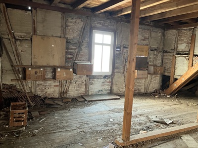 Nach der Terminabsprache mit der neuen Besitzerin konnten sie die Mühle betreten und mit der Reinigung im 5. Stock beginnen. Schon im ersten Kasten konnten sie zwei Dohlenküken antreffen. Überrascht wurden die beiden auch durch die Anwesenheit eines Waschbären,der es sich in einem der Kästen bequem gemacht hatte. Nachdem Sie den Waschbären vergrämt hatten,konnten sie die restlichen Brutkästen fertig säubern. Schon nach einer Stunde war die Arbeit erledigt. Toll ist es auch das dieses Gebäude der Mühle jedes Jahr ab Anfang Mai bis Ende August das Sommerquartier von mindestens 28 Mauerseglerpaaren ist. Sie