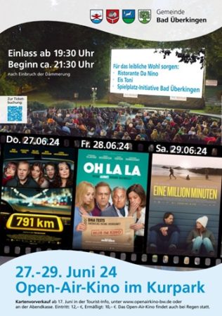 Nach sechs Jahren Pause kehrt das beliebte Open-Air-Kino in den Kurpark von Bad Überkingen zurück. Vom 27. Juni bis 29. Juni 2024 erwartet die Besucher an drei Abenden ein abwechslungsreiches Filmprogramm unter freiem Himmel.