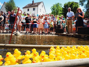 Es ist schon ein enormer Kontrast: Dort,wo die Fils bis vor wenigen Wochen beim Hochwasserereignis an Pfingsten einen Pegelstand von mehr als 4 Metern hatte,sollen in wenigen Tagen kleine quietschgelbe Entchen gemütlich um die Wette schwimmen und ihren Besitzern Chancen auf den Gewinn attraktiver Preise ermöglichen. „Anfang Juni war die Fils ein lebensgefährliches Gewässer und nun dient sie als Kulisse für unser drittes Entenrennen. Das ist ein Unterschied wie Tag und Nacht“,weiß auch Uhingens Bürgermeister Matthias Wittlinger. Dennoch freue er sich,wie sicherlich viele andere Menschen in Uhingen auch,auf entspannte Stunden beim Kandelhock. „Das haben wir uns verdient!“