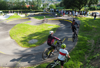 Skater und Biker feiern Eröffnung des Skateparks und Pumptracks bei sommerlichen Partyvibes