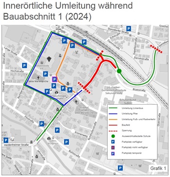 Während der Baumaßnahmen ist die Heidenheimer Straße im dem beschriebenen Abschnitt voll gesperrt. Folgende innerörtliche Umleitungen sind vorgesehen: