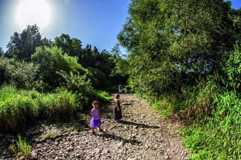 Foto (Stadt Tuttlingen): Donaubergland – Ein weltweit einzigartiges Naturwunder und offizieller Geopoint des UNESCO Global Geoparks Schwäbische Alb: Zwischen Immendingen und Möhringen versickert die Donau und taucht 12 km weiter am Aachtopf wieder auf.