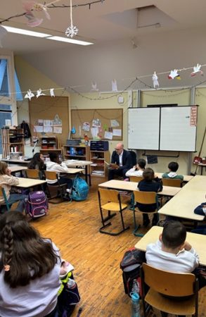 Foto: Vorlesetag – OB Frank Dehmer las Schülerinnen und Schülern eine Geschichte vor.