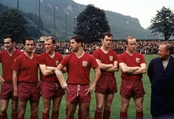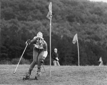 Foto: Maier,Müller und Beckenbauer zu Gast beim SC Geislingen (links). Auf Gras-Skis übers grüne Gras (rechts).