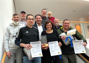 Anmeldung und TeilnahmeDie Anmeldung erfolgt ganz einfach online unter www.ben-i-fit.de. Nach der Registrierung können Teilnehmende ihre Trainingszeiten eintragen und ihre gelaufenen Kilometer sammeln. Zur Auswahl stehen zwei Strecken: 5 km und 10 km,die sowohl für Läufer:innen als auch für Nordic Walker:innen geeignet sind. Die Strecken sind ab dem Brentenholz-Parkplatz mit gut sichtbaren Holzpfeilen ausgeschildert,sodass sich alle problemlos orientieren können. Für die Trainingsfleissigsten geht es wieder um den KM-Wanderpokal.Gemeinsam aktiv mit prominenter UnterstützungDer Schirmherr der Veranstaltung,Oberbürgermeister Klaus Heininger,unterstützt die Aktion und unterstreicht die Bedeutung von Bewegung und einem gesunden Lebensstil für die Gemeinschaft.„Das Winterlauftraining ist eine wunderbare Gelegenheit,aktiv in die kalte Jahreszeit zu starten und gleichzeitig etwas für die Gesundheit zu tun. Wie die letzten Jahre freut sich das Organisationsteam wieder über eine Spende für ALBTRAUM 100 e.V.. Mit dem Geld werden karitative und soziale Projekte im Kreis Göppingen unterstützt.Gesundheit und Fitness für alleOb Einsteiger:innen oder ambitionierte Sportler:innen – beim 5. Eislinger Winterlauftraining BEN-I-FIT steht die Freude an Bewegung im Vordergrund. Jeder kann nach seinem eigenen Tempo trainieren und dabei die Winterlandschaft genießen.Seien Sie dabei und starten Sie fit ins neue Jahr! Melden Sie sich noch heute an unter www.ben-i-fit.de und werden Sie Teil einer aktiven Gemeinschaft.Foto: Die Besten bei KM-Sammeln vom letzten JahrPM Arbeitskreis eislingen-online e.V.