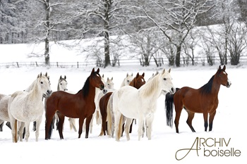 Foto: Marbacher Vollblutaraberstuten auf der verschneiten Weide (Foto: Archiv Boiselle)