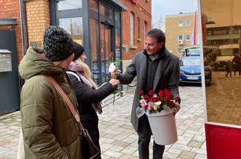 „Mit diesem Valentinsgruß möchten wir auf das wichtige Thema des fairen Handels aufmerksam machen,denn unsere Entscheidungen beim Einkauf machen einen globalen Unterschied“,betonte Oberbürgermeister Klaus Heininger die Bedeutung von Faitrade-Produkten und deren Einfluss auf gerechte Löhne und Arbeitsbedingungen bei den Erzeugern. Nach knapp einer Stunde waren die rund 200 Rosen verteilt und zauberten bei den Besucherinnen des Wochenmarktes ein überraschtes Lächeln in das Gesicht. Die Verteilaktion war Teil einer Kampagne von Fairtrade Deutschland für fairen Konsum. Ziel ist es,das Bewusstsein der Verbraucherinnen und Verbraucher zu schärfen und dazu zu ermutigen,bewusste Kaufentscheidungen zu treffen.