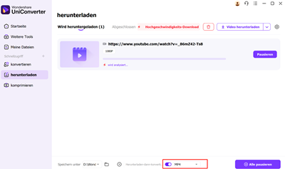 Die Software analysiert automatisch die eingegebene URL,um das Video für die Konvertierung vorzubereiten.