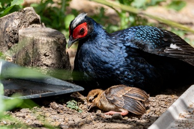 Foto (Wilhelma Stuttgart/Birger Meierjohann): Bei den Vietnam- oder Edwardsfasanen in der Wilhelma ist aktuell Nachwuchs zu bewundern.