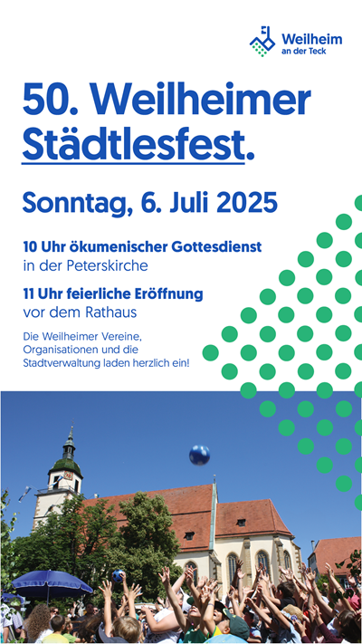 Weitere Informationen und die Übersicht über das vollständige Spieleangebot,Unterhaltungsprogramm und das kulinarische Angebot unter: www.weilheim-teck.de/staedtlesfest