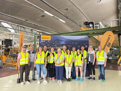 In Fachvorträgen und bei einem anschließenden Rundgang durch die Produktion erhielten die Gäste Einblicke in den Unternehmensbereich ContiTech,den Standort Eislingen mit seinem Fokus auf Oberflächenlösungen für den Fahrzeuginnenraum sowie laufende Projekte in den Bereichen Materialentwicklung,Produktinnovation und Energiemanagement. Ein Beispiel für das Engagement des Standorts in Sachen Nachhaltigkeit ist die international anerkannte ISCC PLUS-Zertifizierung. Sie bestätigt den Einsatz nachwachsender und wiederverwerteter Materialien in Polyolefin-basierten Oberflächenmaterialien nachweist. Seit 2020 wird der Standort zudem vollständig mit Grünstrom betrieben.