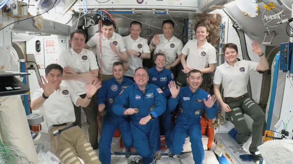 Schichtwechsel auf der ISS: »Crew 11« (in Blau) löst »Crew 10« ab