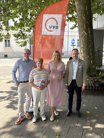 über die VVS-Halbjahresbilanz,das neue VVS-Jobportal und den VVS-Rider im Stauferkreis aus. Sie besuchten im Rahmen der Tour Bürgermeister Roland Schweikert in Gruibingen und sprachen dort unter anderem über die Themen Finanzierung des Deutschland-Tickets und des Busverkehrs.
