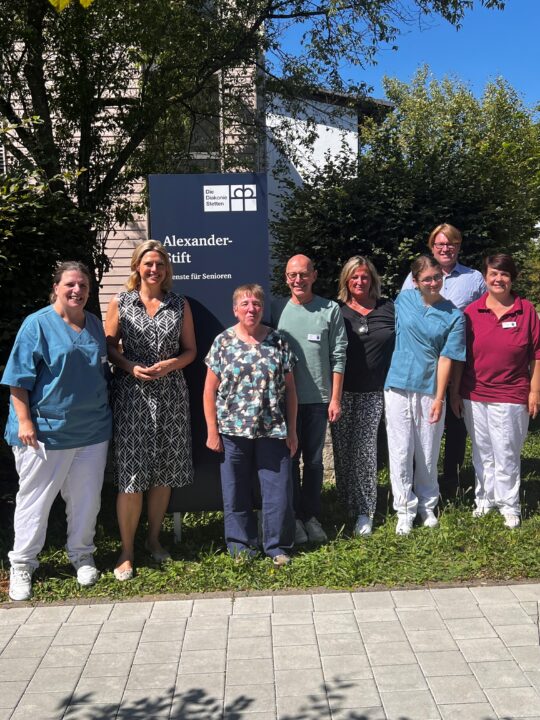Zum Start der Tour besuchte die Abgeordnete das Alexanderstift in Schlierbach. Das Pflegeheim ist vor allem auf die stationäre Betreuung demenzkranker Bewohner ausgelegt. Besonders wichtig sind hier die familiäre Atmosphäre und die örtliche Einbindung durch die zentrale Lage der Einrichtung. Beim Besuch zeigt sich die Heimleitung stolz auf die Einrichtung,weist aber auf die Herausforderungen hin. „Die Kosten der hohen bürokratischen Auflagen durch Dokumentationspflichten zur vermeintlichen Qualitätssicherung sind unvorstellbar. Die Pflegerinnen und Pfleger in Deutschland sind bestens ausgebildet und sollten nicht jeden Schritt extra kontrollieren und protokolieren müssen. Durch das Herabsetzen der Auflagen können Pfleger und Bewohner schnell und einfach entlastet werden“,resümiert die Abgeordnete.