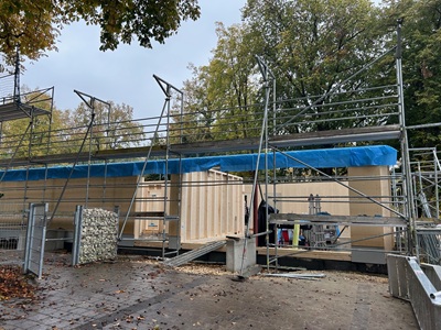 Überblick über die aktuellen ProjekteNeubau des Kindergartens im ZillerstallDas alte Gebäude im Zillerstall war stark sanierungsbedürftig und wird nun durch einen größeren Neubau ersetzt. Während der Bauzeit werden die Kinder interimsweise in einer Containeranlage,die eigens dafür gerade auf dem Bolzplatz an der Zillerstallstraße errichtet wird,betreut.Sanierung und Erweiterung des Kindergartens Villa Sonnenschein in AufhausenSeit dem Frühjahr wird die Kindertageseinrichtung in Aufhausen,für den die Stadtverwaltung kürzlich die Trägerschaft übernommen hat,umfassend saniert und erweitert. Ziel ist die Schaffung zusätzlicher Betreuungsplätze: Statt bisher zwei sollen künftig drei Gruppen Platz finden. Parallel erfolgt eine energetische und barrierefreie Modernisierung des Gebäudes. Die Betreuung läuft während der Bauphase in einem Interimsgebäude weiter.Neubau des Kindergartens „Bunte Welt im Stadtpark“Im Sommer haben die Bauarbeiten für den Neubau der Kindertagesstätte „Bunte Welt im Stadtpark“ begonnen. Der Neubau entsteht in nachhaltiger Holzelementbauweise. Ein großzügig überstehendes Satteldach schützt die Holzkonstruktion vor Witterung. Mit dem Neubau wird das Betreuungsangebot deutlich erweitert: Statt zwei Gruppen können künftig vier betreut werden – bis zu 88 Kinder,darunter auch unter Dreijährige,finden hier Platz.Die Stadtverwaltung dankt allen beteiligten Unternehmen,Handwerkerinnen und Handwerkern sowie den Kita-Teams für ihr Engagement und die gute Zusammenarbeit.Foto (Stadtverwaltung Geislingen an der Steige / Christiane Wehnert): Stadtpark – Die Holzwände für das Erdgeschoss wurden bereits errichtetPM Stadt Geislingen an der Steige