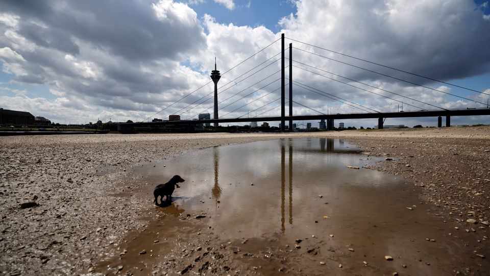 Rhein bei Düsseldorf bei Niedrigwasser: Europa ringt um Klimaziel für 2040