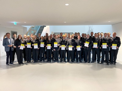 Foto (Bildquelle: Stadt Eislingen): Die Freiwillige Feuerwehr Eislingen im Zeichen der Anerkennung – 44 Einsatzkräfte erhielten die Bevölkerungsschutz-Einsatzmedaille