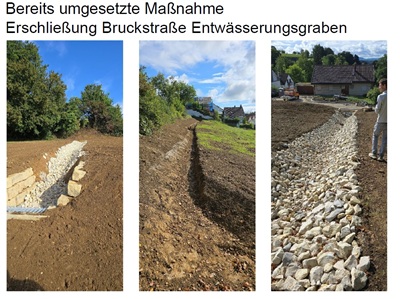 Bauliche MaßnahmenZudem listet das Starkregenrisiko-Management auf,welche baulichen Maßnahmen die Stadt Uhingen ergreifen kann,beispielsweise für das Stadtgebiet Uhingen:Ausbau des östlichen Grabens in einem Teilbereich der Jahnstraße mit leistungsstarken Einläufeneinen neuen Entwässerungsgraben am GotenwegGeländemodellierung Gewerbegebiet Seestraßeneuer Graben zur Ableitung des südlich des Gebäudes bestehenden Abflussweges zum Einlaufbauwerk im Bereich der MaybachstraßeMaßnahmen für Holzhausen: optimierte Wassereinläufe mit größeren RechenBau einer Mauer entlang von Äckern mit der Funktion eines WasserrückhaltsAnlegen von Ackerrandstreifen mit BlühflächeBau eines kleinen Rückhalteraums mit Wall und Einlauf zum GrundablassMaßnahmen für Sparwiesen:Anlegen einer Mulde als Schlammfang und Ackerrandstreifen am Ortsrand bei der Rembrandstraße und Hohlbeinstraße sowie mit Optimierung des vorhandenen Einlaufs an der Faurndauer Straße und WasenklingeAnlegen eines Ackerrandstreifens an der Albstraße sowie einer Mulde als Schlammfang,Maßnahmen für Nassach: neue Einlaufbauwerke installierenbestehende Einlassbauwerke optimierenUm die Vorhaben umzusetzen,benötigt die Stadt Uhingen in manchen Fällen aber die Bereitschaft der jeweiligen Grundstückseigentümer,etwas von deren Grund und Boden an die Stadt zu verkaufen. Daher sieht das Starkregenrisikomanagement eine Priorisierung der Maßnahmen in 3 Stufen vor:1 – einfach umsetzbare Maßnahmen ohne Grunderwerb2 – einfach umsetzbare Maßnahmen mit Grunderwerb3 – Maßnahmen mit Grunderwerb und Objektplanung/ DimensionierungManche Maßnahmen konnten seitens der Stadt schon umgesetzt werden: Bei der Erschließung für das Wohngebiet Bruckstraße in Holzhausen wurde ein Entwässerungsgraben mit Einlaufbauwerk errichtet.Sowohl Matthias Wittlinger als auch Achim Binder warnten die Anwesenden davor,nur auf Maßnahmen der Stadt zu setzen und selbst nicht tätig zu werden. „Eigentum verpflichtet“,sagte Matthias Wittlinger. Armin Binder verwies an das Wasserhaushaltsgesetz,demzufolge die Eigenvorsorge gesetzlich vorgeschrieben ist: „Jede Person,die durch Hochwasser betroffen sein kann,ist verpflichtet,geeignete Vorsorgemaßnahmen zum Schutz vor nachteiligen Hochwasserfolgen und zur Schadensminderung zu treffen“,lautet die Kernaussage. Dabei dürfen keine nachteiligen Folgen durch Maßnahmen für tiefer liegende oder benachbarte Grundstücke entstehen.