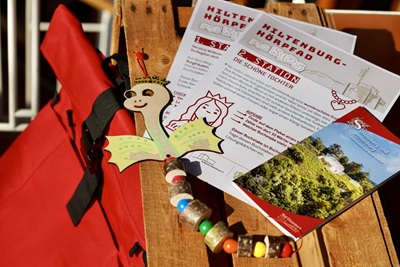 Im Mittelpunkt steht eine zusammenhängende,kindgerecht erzählte Geschichte rund um das geheimnisvolle Burgfräulein der Hiltenburg. Ausgestattet mit einem roten Abenteuer-Rucksack begeben sich die Kinder gemeinsam mit ihren Begleitpersonen auf eine spannende Entdeckungsreise entlang des offiziellen Maiwegs zur Burgruine Hiltenburg.