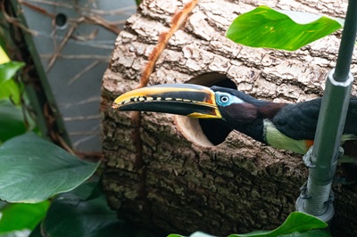 Wer den Dschungelpfad im Amazonienhaus der Wilhelma erkundet, kann mit etwas Glück und einem guten Auge beobachten, wie die Braunohrarassaris hoch in den Bäumen ihren gerade flügge gewordenen Nachwuchs füttern. Braunohrarassaris zählen zu den Tukanen. Das charakteristische Merkmal der oft bunt gefärbten und in Mittel- und Südamerika beheimateten Tukane ist ihr riesiger Schnabel. Trotz seiner ...