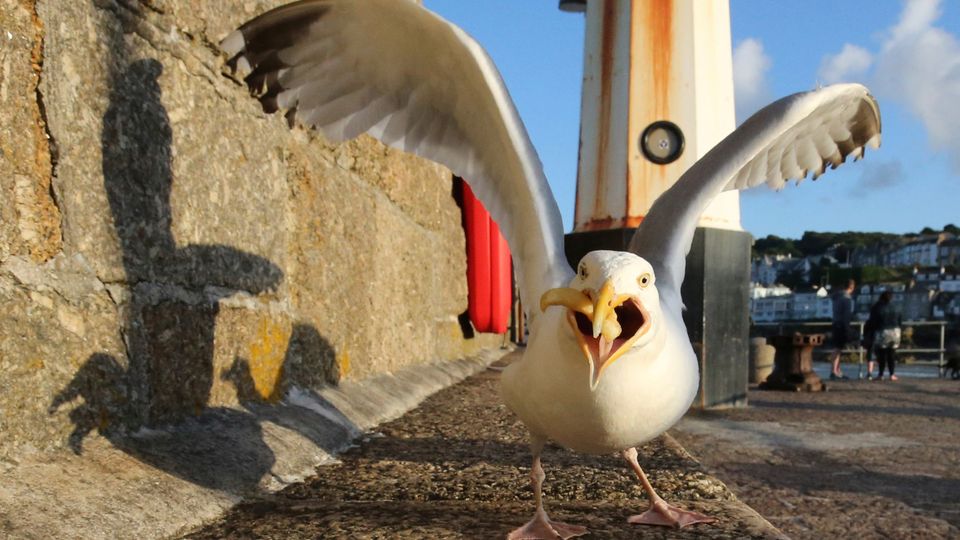»Nein, weg da, das ist mein Essen!« Mit diesen Worten lassen sich, zumindest wenn sie brüllend vorgetragen werden, Möwen vertreiben. Weniger gut funktioniert zarter Rotkehlchengesang. Das ergab eine Studie in England.