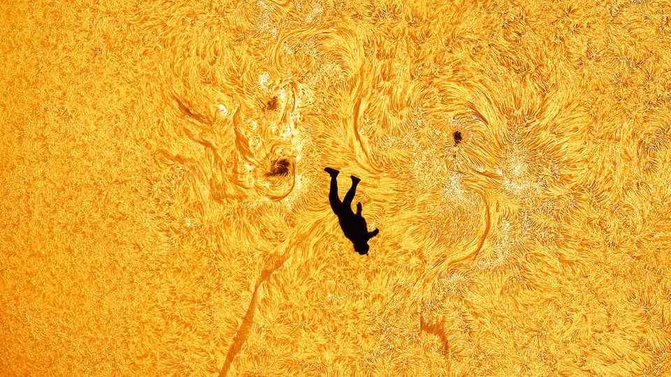 Ein Mensch, der kopfüber vom Himmel fällt – direkt vor der Sonne: Diese Aufnahme begeistert Hunderttausende Menschen in sozialen Netzwerken. Hier erklären Fachleute, wie ein solches Bild möglich ist.