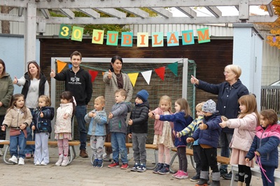 Die Kinder und das Kita-Team steckten die Gäste mit ihrer Freude über das Jubiläum an und begeisterten mit einem selbstgedichteten Lied, das eigens zum 30-jährigen Jubiläum entstanden ist. Vor 30 Jahren zogen 75 Kinder mit 6 Erzieherinnen in die Kita im Bärenbachweg ein. Heute muss es nicht mehr so eng in den Räumen zugehen. Die ...